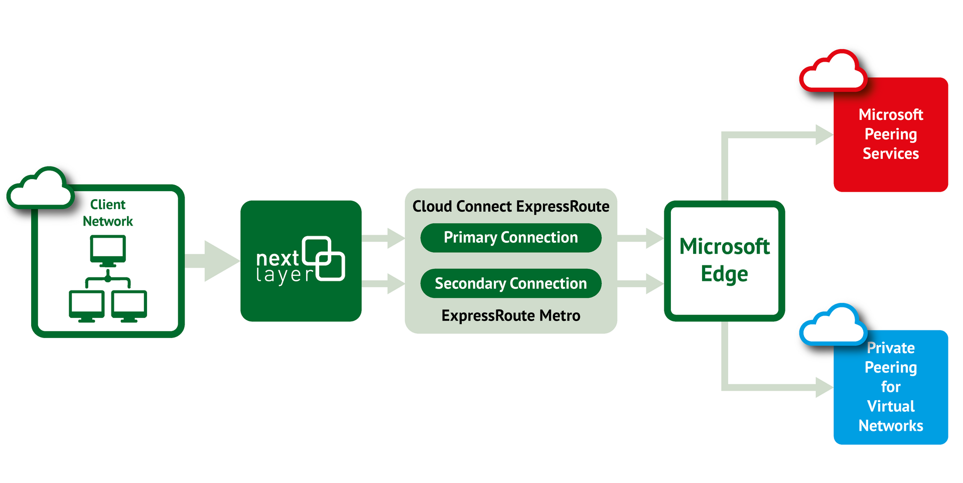 Cloudbasierte Services wie Microsoft 365 oder Microsoft Azure benötigen zuverlässige, sichere und leistungsfähige Verbindungen. Als zertifizierter Microsoft ExpressRoute Partner bietet next layer individuelle Lösungen für eine direkte, hochverfügbare und sichere Anbindung an die Microsoft Cloud direkt an die Region Austria East (ExpressRoute Locations Wien/Vienna und Vienna2) und auch Germany West Central (ExpressRoute Locations Frankfurt und Frankfurt2).