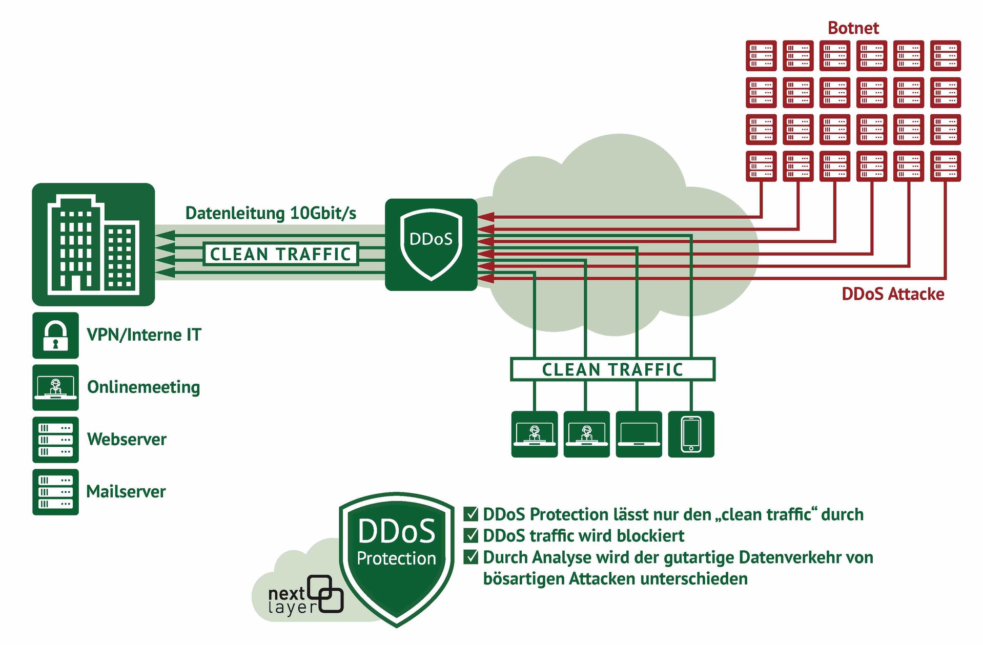 Häufig handelt es sich um DDoS-Attacken (Distributed Denial of Service), deren Bandbreiten längst Dimensionen erreicht haben, die eine lokale Abwehr unmöglich machen. Hier kommt next layer ins Spiel: Gemeinsam mit unserem Technologiepartner Netscout, einem führenden Anbieter von Sicherheitslösungen, bieten wir hochskalierbare Netzwerkschutzlösungen, die Angriffe zuverlässig erkennen und neutralisieren.