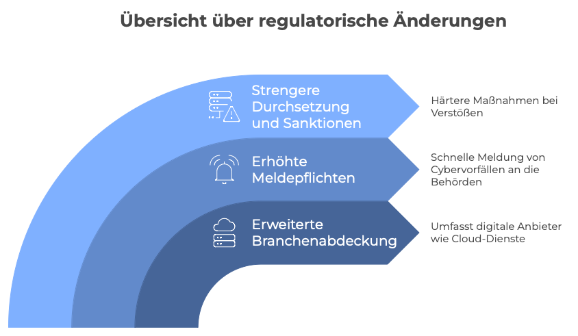 Die NIS2-Richtlinie erweitert die ursprünglichen Regelungen von 2016 und betrifft Unternehmen in essenziellen Sektoren wie Energie, Gesundheit, Verkehr und digitale Infrastruktur. Sie verpflichtet zu strengeren Sicherheitsmaßnahmen und einer besseren Vorbereitung auf Cybervorfälle.